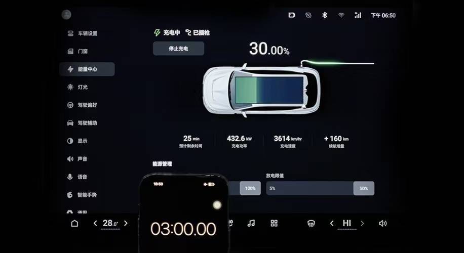經過實測,嵐圖知音5C超充峰值充電功率可達400kW以上,實現充電3分鐘通勤百公里,用戶在長途出行時,中途簡單休整的時間即可補足大量電能,無需長時間等待。然而燃油車加滿一次油大約需要5-10分鐘,這一比較,嵐圖知音5C超充的補能速度完全可以媲美燃油車。