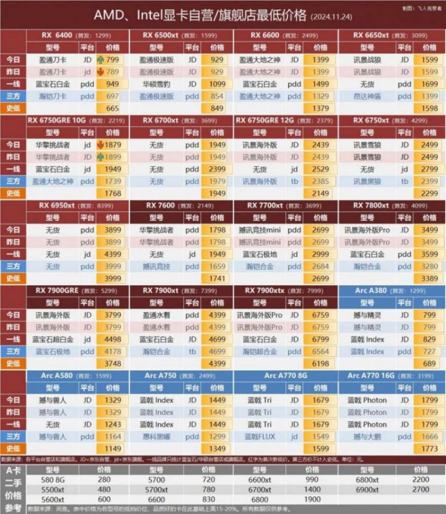 - 訊景7900GRE 海外版,自營價3799元;