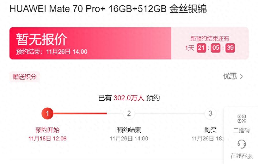 大家都知道,華為mate70系列在11月18日開啟了預定,品牌盛典將于 11 月 26 日 14:30 舉行,不出意外,姍姍來遲的 Mate 70系列,勢必又會引發一波搶購狂潮。截至目前,新機在官網預約人數已超302萬人。