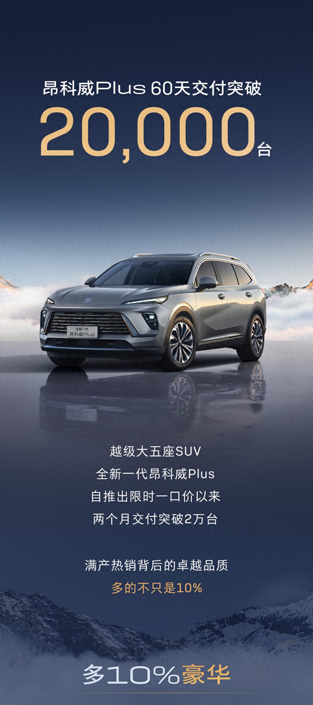 11月24日消息,別克今日宣布,全新一代昂科威Plus自推出限時一口價以來,兩個月交付突破2萬臺。