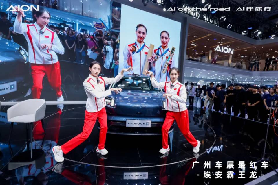 花泳冠軍王柳懿、王芊懿,香港知名歌手梁漢文,粵圈紅人Uncle郭,最火辣車模程兒,粵語車圈大咖鐘鴻飛,等明星嘉賓紛紛現身埃安展臺,點贊埃安。