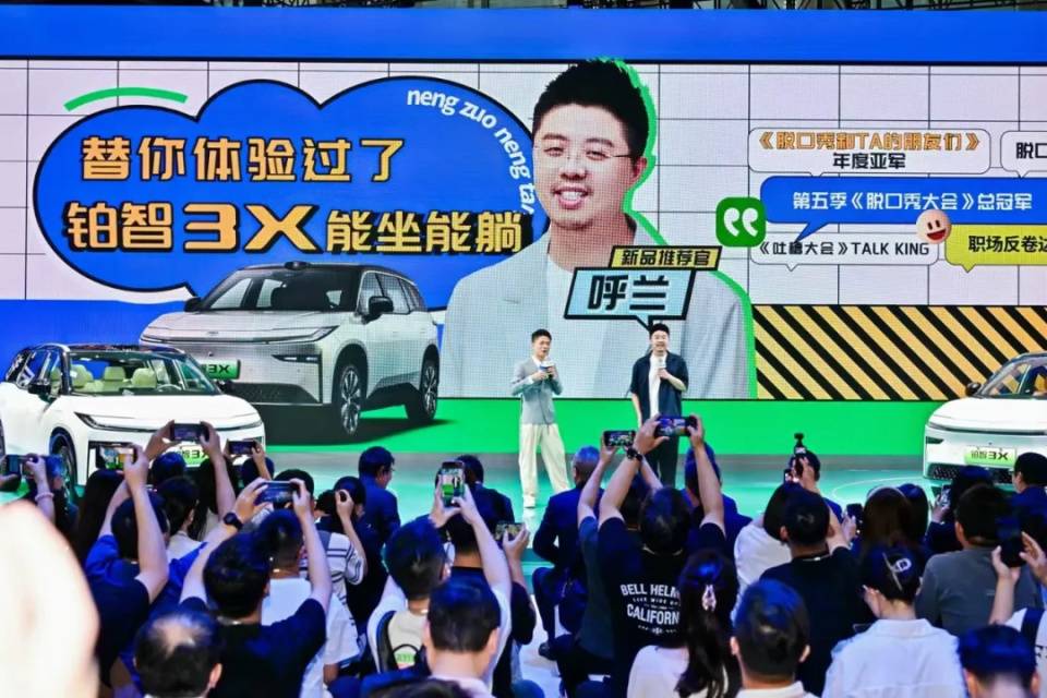 車展期間,廣汽豐田創新性地將脫口秀舞臺融入車展,特邀脫口秀明星呼蘭、賈耗擔任新品推薦官,現場互動熱烈,氣氛高漲。
