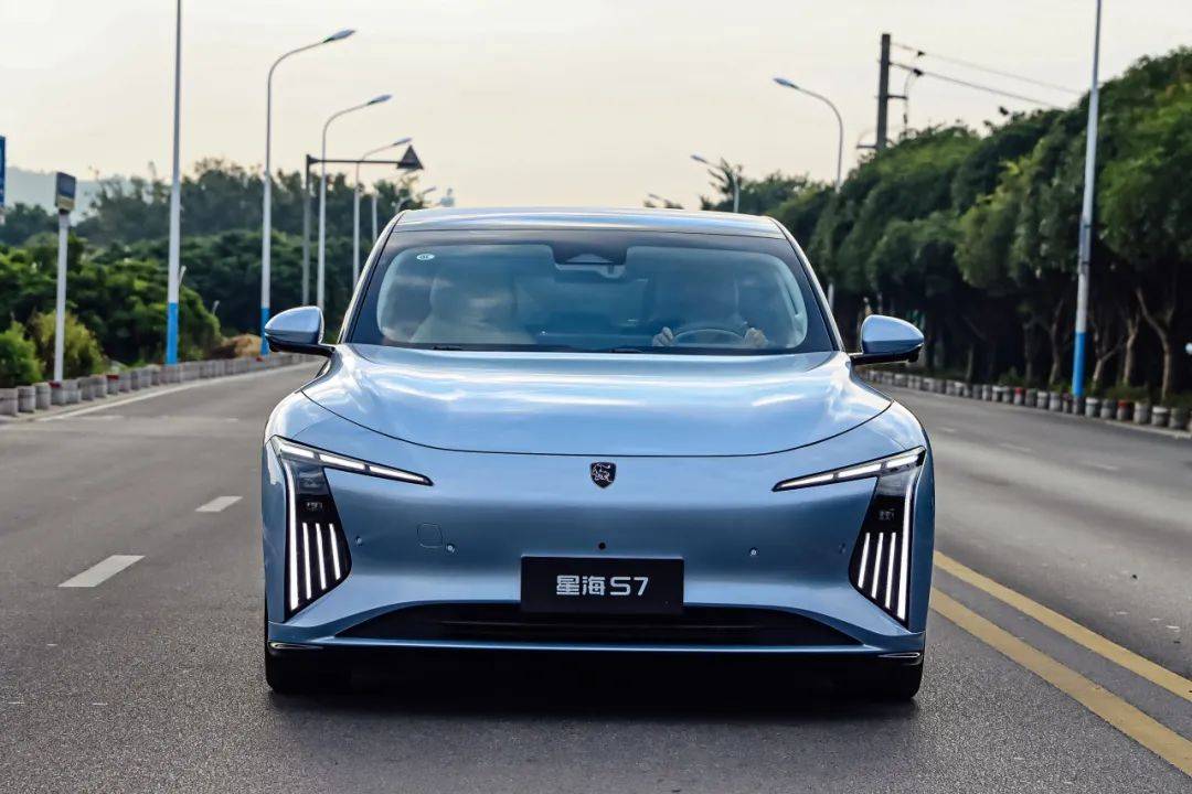 在本次車展上,東風風行亮相了其星海S7增程版車型。該車型的外觀設計與純電動版別無二致,其流線型車身設計使整車風阻系數低至0.191cd。車輛前臉的大燈設計尤為引人注目,羽翼式的燈腔結合內部燈帶的設計,賦予了車頭更加濃郁的科幻感。車內方面,星海S7增程版追求簡約而現代的風格,懸浮式中控屏與液晶儀表盤共同打造了一個先進的交互界面。