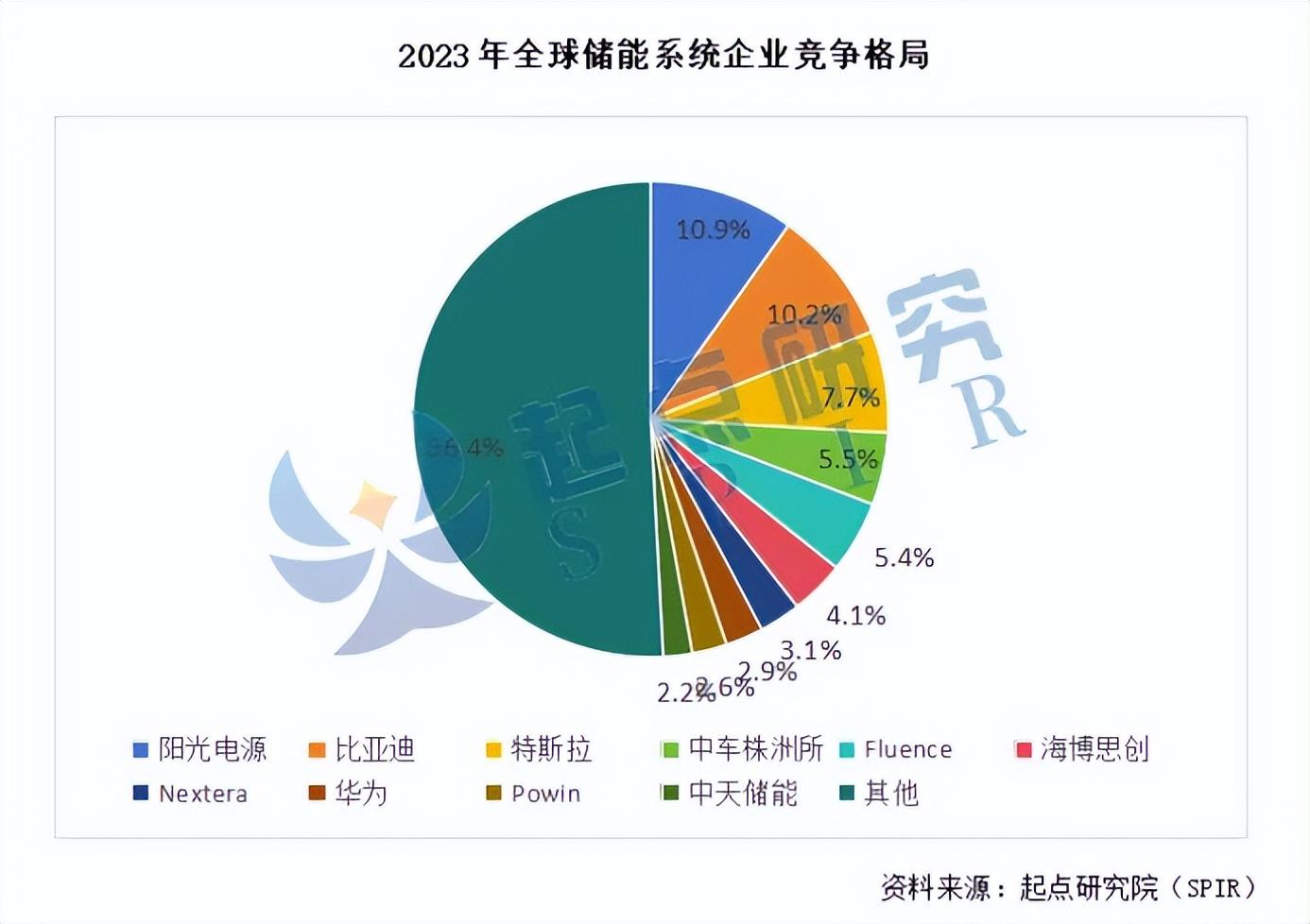 據起點鋰電發布的《2024年全球儲能行業發展藍皮書》內容顯示,2023年全球鋰電儲能系統出貨量約為192GWh,其中出貨排名前五的企業分別是陽光電源、比亞迪、特斯拉、中車株洲所、Fluence。相較2022年全球出貨排名,2023年特斯拉以7.7%的全球出貨占比更進一位,躋身前三,增勢不減。