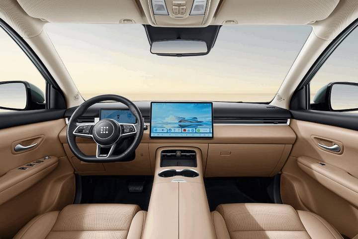 藍電E5 PLUS的內飾設計并不馬虎,車內采用了大量軟性材質覆蓋,并且配色方面也足夠溫馨家用。作為重點,新車搭載了15.6英寸的超大懸浮式屏幕,配合華為HiCar4.0車機系統,無論語音交互還是智能化表現足以列為頭部水平。此外,新車還提供8.8英寸液晶儀表、電子懷擋換擋桿、自動空調等配置。