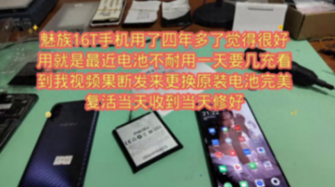 魅族16T手機用了四年多了覺得很好用,就是最近電池不耐用,一天要幾充,看到我視頻果斷發來更換原裝電池,完美復活,當天收到當天修好。