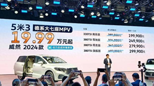在本次2024廣州車展上,上汽大眾威然推出限時一口價19.99萬元起售。上汽大眾是首個推行一口價政策的車企,該政策簡化了購車流程,提高了透明度,減少了消費者比較成本。正如李俊所說:“一口價政策的推出讓消費者、潛在用戶非常心動,用戶需求旺盛。”