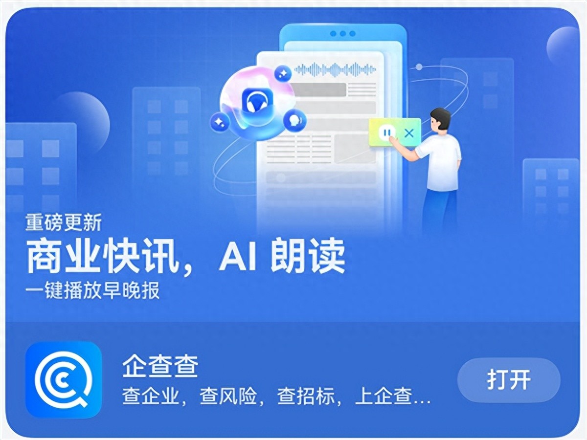 另一點值得關注的是,企查查還接入了HarmonyOS NEXT的AI朗讀能力,實現了一鍵播放商業快訊的功能,幫助用戶快速獲取商業情報信息。