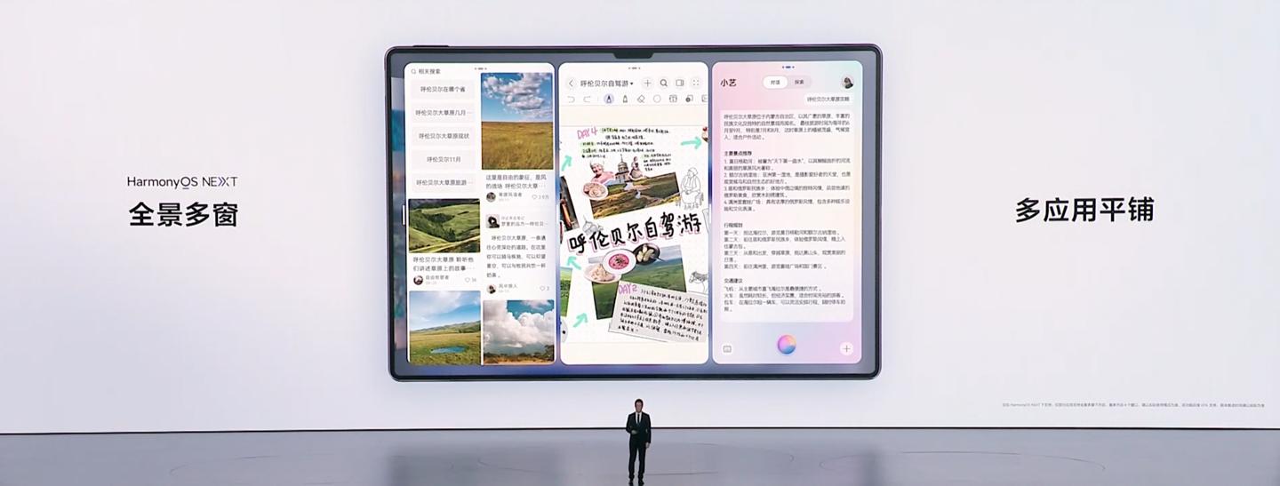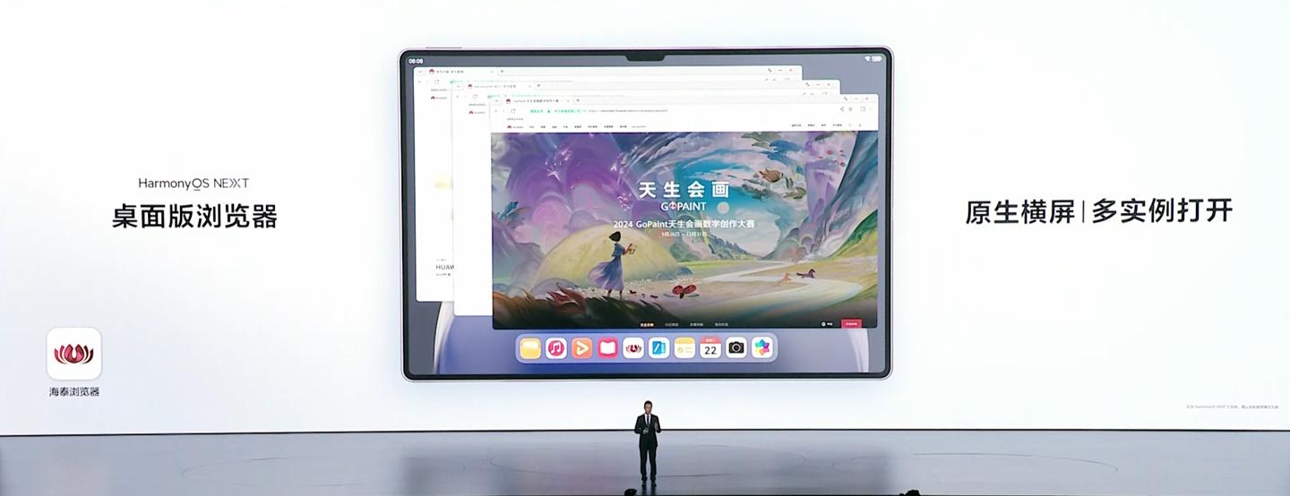 該機搭載原生鴻蒙,支持全景多窗功能,應用窗口比例可以自由調整,同時也支持全新手勢交互功能,用戶可以使用“抓握”手勢,將屏幕中的畫面進行截取,并最終流轉至其他設備。此外,華為還演示了 WPS Office、中望 CAD、海泰瀏覽器等多款專為平板定制的應用,同時擁有“桌面版文件管理”。