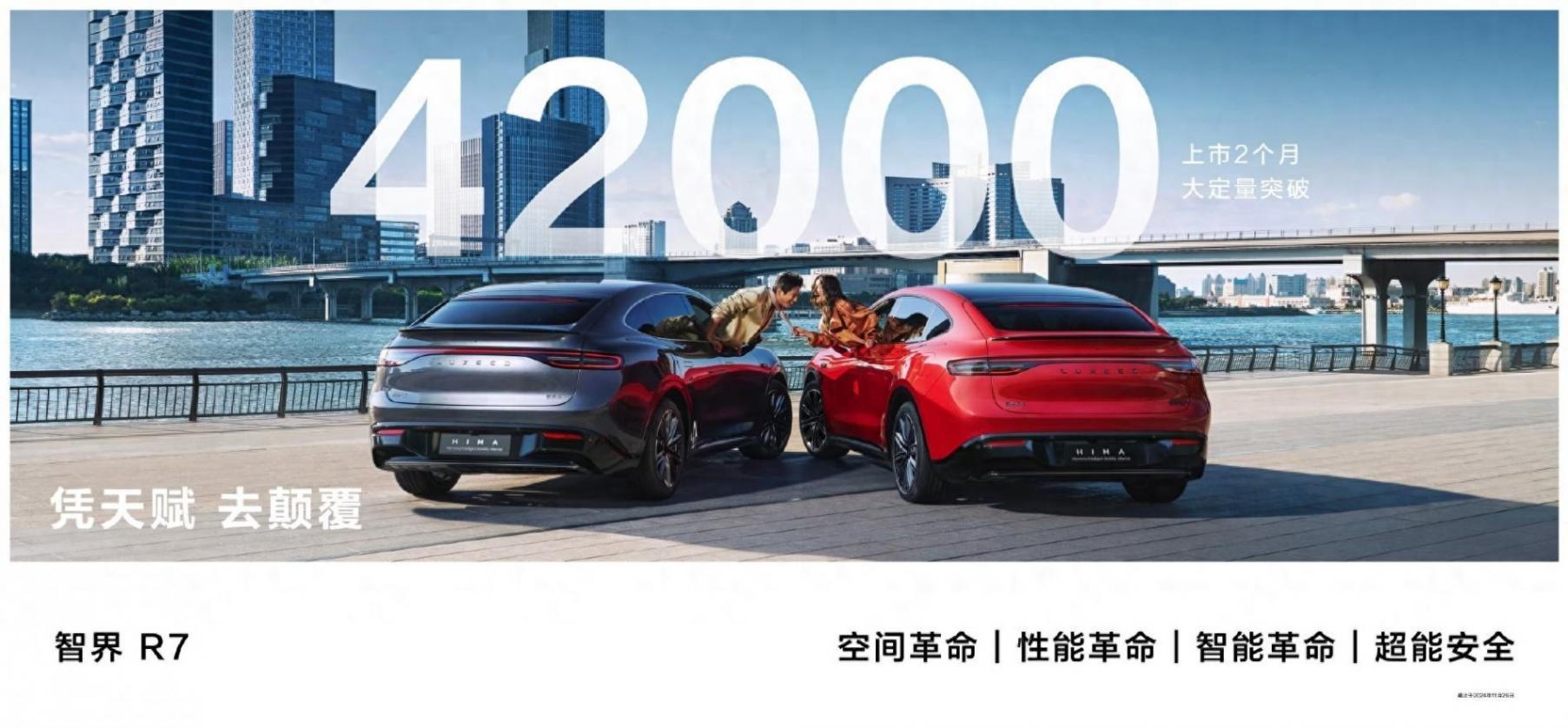何剛介紹完一系列華為IoT設備后,余承東上臺介紹汽車相關新品。他表示,智界要打造年輕人喜愛的、滿意的、自豪的品牌,智界R7上市2個月大定突破42000臺,