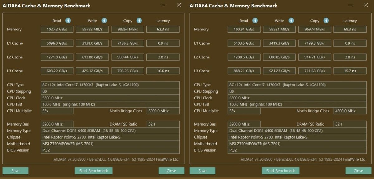 左:神凝PRO 6400 CL28,右:6400 CL38