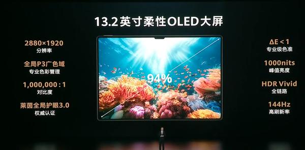 華為MatePad Pro 13.2英寸配備一塊13.2英寸OLED大屏,屏占比高達(dá)94%。華為臨境顯示加持,色彩明顯層次分明,明暗過渡細(xì)膩入微。并可選柔性O(shè)LED云晰柔光屏,采用創(chuàng)新光學(xué)膜材,使發(fā)光柔和均勻。搭配納米磁控光學(xué)鍍膜工藝和納米蝕刻技術(shù),輕松應(yīng)對光線復(fù)雜的使用環(huán)境,減少眩光干擾。