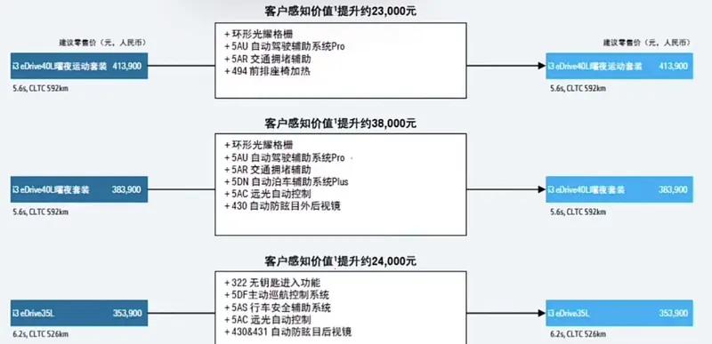 簡(jiǎn)單總結(jié)下i3三款車型的配置,最建議選的是中配的40L耀夜套裝,3萬(wàn)的差價(jià)不僅僅是外觀與配置上的提升,最關(guān)鍵的是動(dòng)力與電池容量也就是續(xù)航的提升,強(qiáng)烈建議大家重點(diǎn)考慮這款,可謂性價(jià)比最高的一款車型。