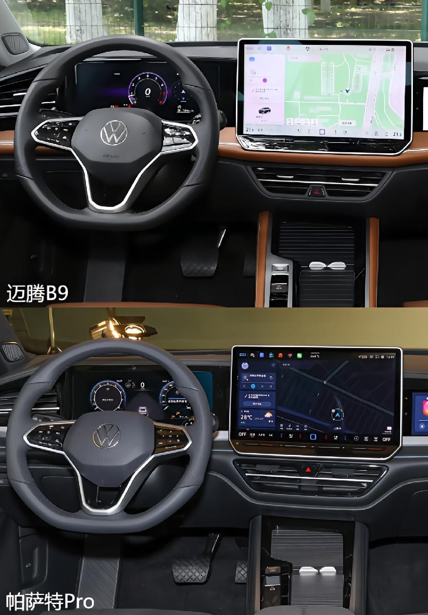 在內(nèi)飾設計方面,新款邁騰B9同樣展現(xiàn)出了其獨特的優(yōu)勢。邁騰B9采用了全新的多屏智能聯(lián)動座艙設計,內(nèi)飾更加具備高級感、未來感。配備的15英寸2K中控大屏不僅分辨率高達2240*1260,還采用了AR抗反射涂層和AFR防指紋涂層,使得屏幕在強光下也能保持清晰的顯示效果。此外,邁騰B9還搭載了11.6英寸的副駕屏和10.25英寸的液晶組合儀表,這些配置不僅提升了內(nèi)飾的科技感,還為駕駛者和乘客帶來了更加便捷的操作體驗。抬頭顯示HUD系統(tǒng)更是將科技與安全完美結(jié)合,能夠顯示數(shù)字車速、交通標示、報警信息、導航及駕駛輔助信息等重要信息,讓駕駛者更加專注于路況。相比之下,帕薩特Pro的內(nèi)飾設計則顯得相對保守。雖然也配備了一定的科技配置,但在整體設計和操作便捷性上,與邁騰B9相比仍存在一定的差距。