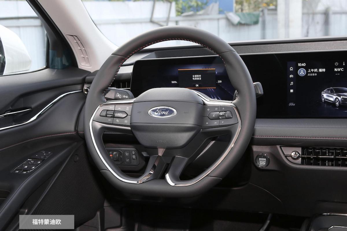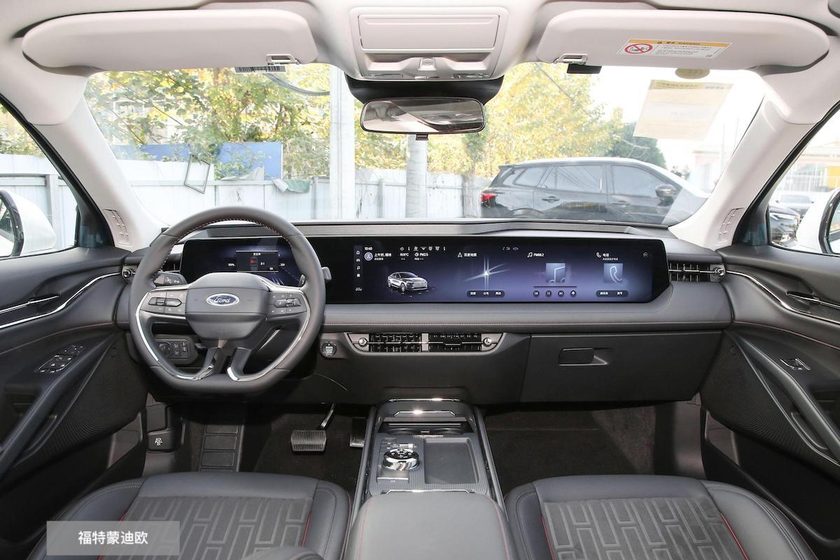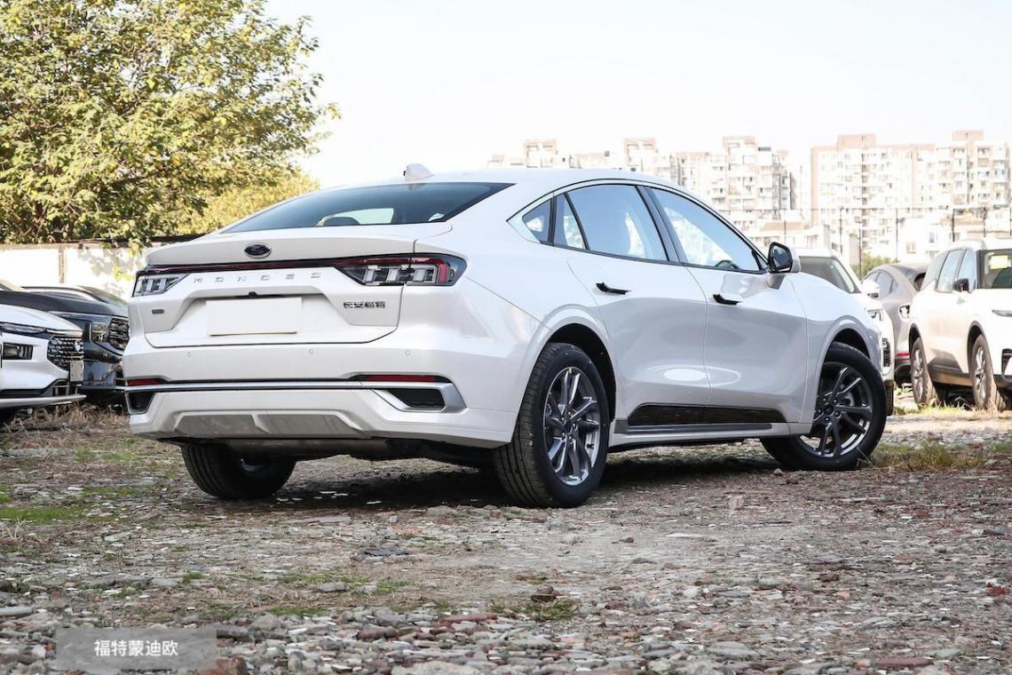 相比之下,即便是沒有獲得ST-Line運動外觀套件的蒙迪歐,也依舊憑借著分體式大燈與更大號的格柵帶出了明顯更突出的視覺沖擊力,而且側身上的寬幅防剮蹭條、車尾保險杠中的高強度運動護板,以及邊寬中窄的貫穿尾燈,仍舊會讓其擁有更年輕、更運動的個性表達。而且能夠在燃油車中看到低風阻的隱藏電動車門把手,也會為蒙迪歐增色幾分。