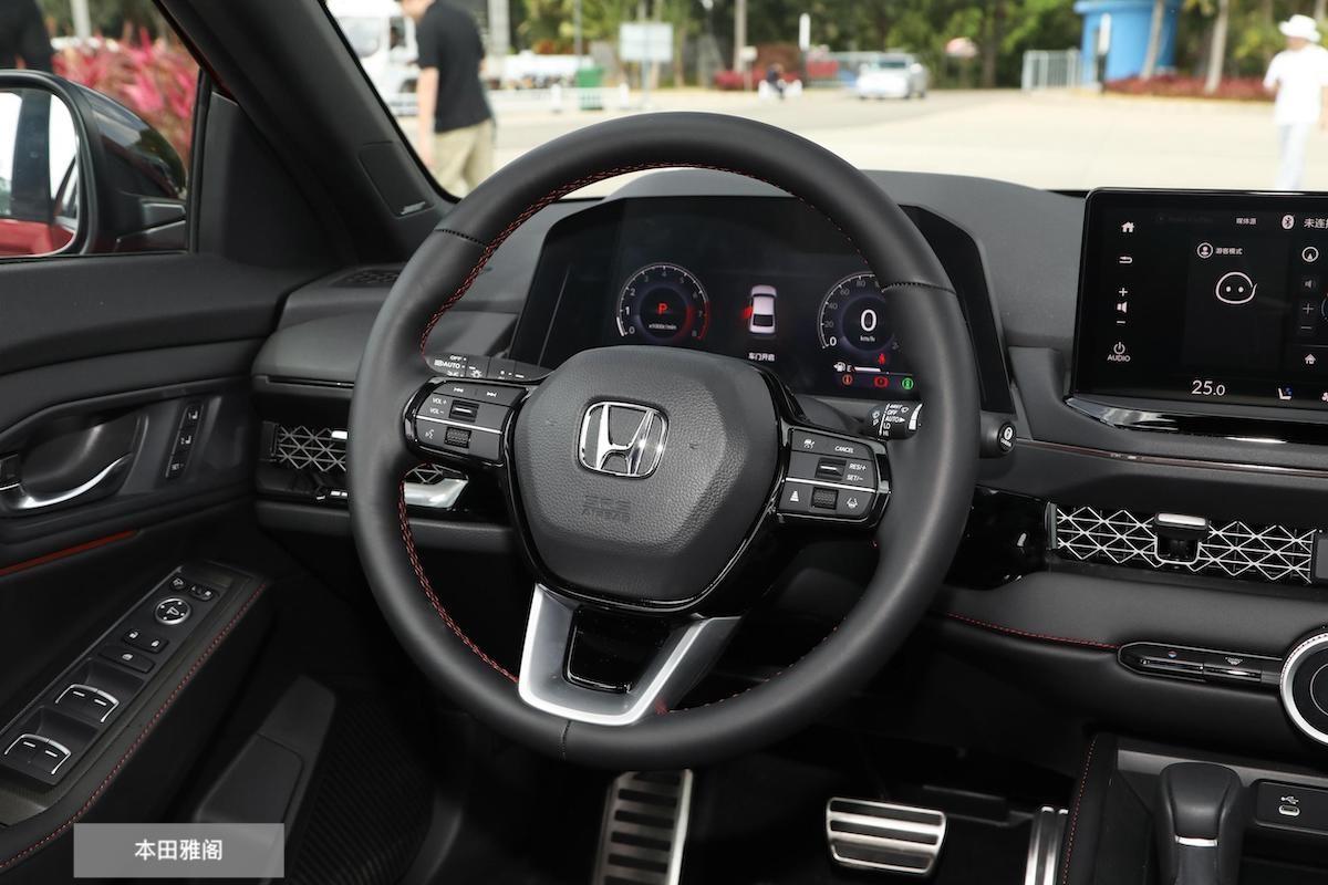 在內飾處置中,擁有12.3英寸數字儀表+27.0英寸廣域屏的蒙迪歐會明顯偏向于科技檔次的表達,而擁有10.2英寸數字儀表+12.3英寸觸控屏的雅閣則明顯側重于便捷實用。在都通過軟包覆蓋了常觸區域的情況下,雅閣勝在細節工藝更精致,而蒙迪歐則得到了更多材質上的混搭,易用性與耐用性都照顧到了。