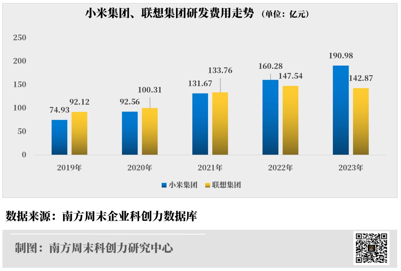 另一方面,2021年3月宣布“未來十年100億美元造車”以來,小米集團研發投入一路水漲船高,從2020年的92.56億元大幅增至2023年的190.98億元。