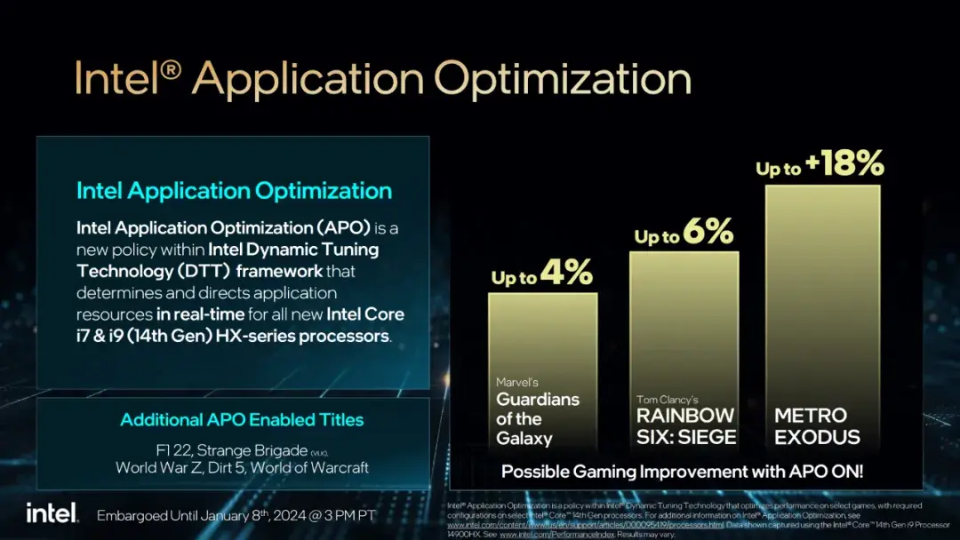 好在 Intel 終于也是意識到了這個問題,同 14 代酷睿發布時帶來了名為 Intel APO 的應用程序優化工具。