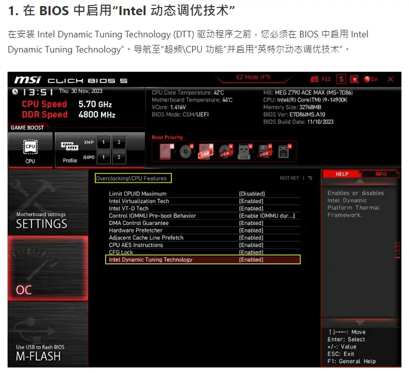 要使用該工具,需要在主板 BIOS 中啟用 Intel DTT 選項并安裝對應驅動,許多主板廠商也給出了具體操作步驟。