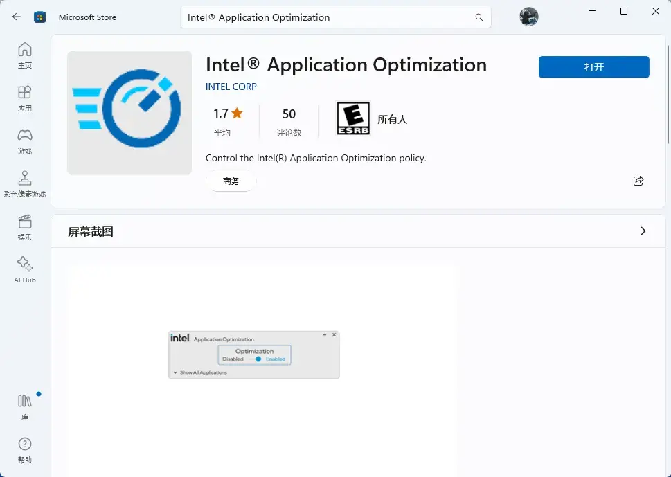 Intel APO 應用可以在 Microsoft Store 中下載安裝: