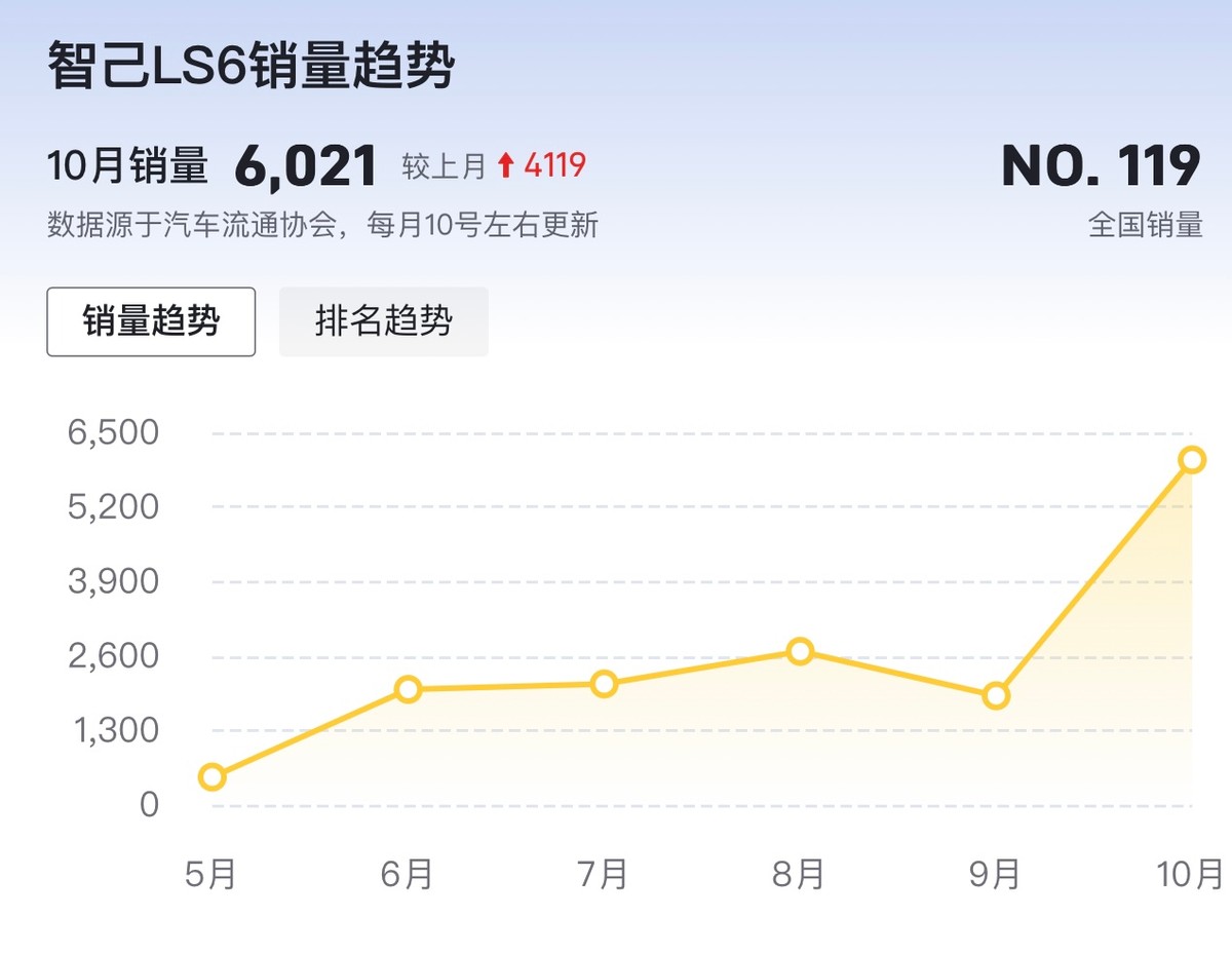 智己LS6,10月份交付6021輛,相對于之前的銷量也有大幅度提升,不知道后續訂單怎么樣?