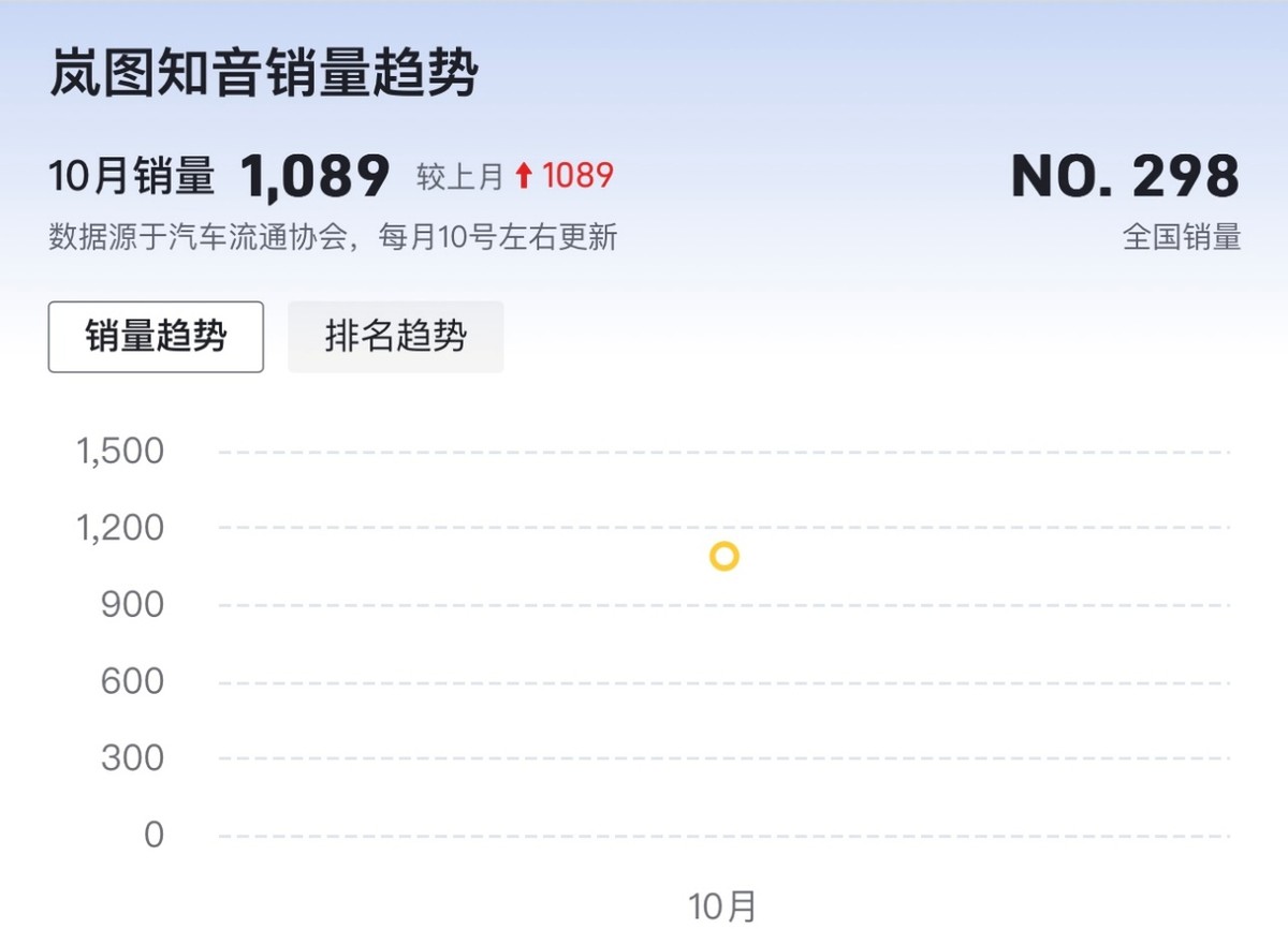 嵐圖知音10月份交付是1089輛,這個車雖然擁有20萬左右少有的5C充電,但是銷量并不算特別驚艷,嵐圖現在已經開始在全國建5C充電站,不知道大量的充電樁上了以后會不會更好一些呢?