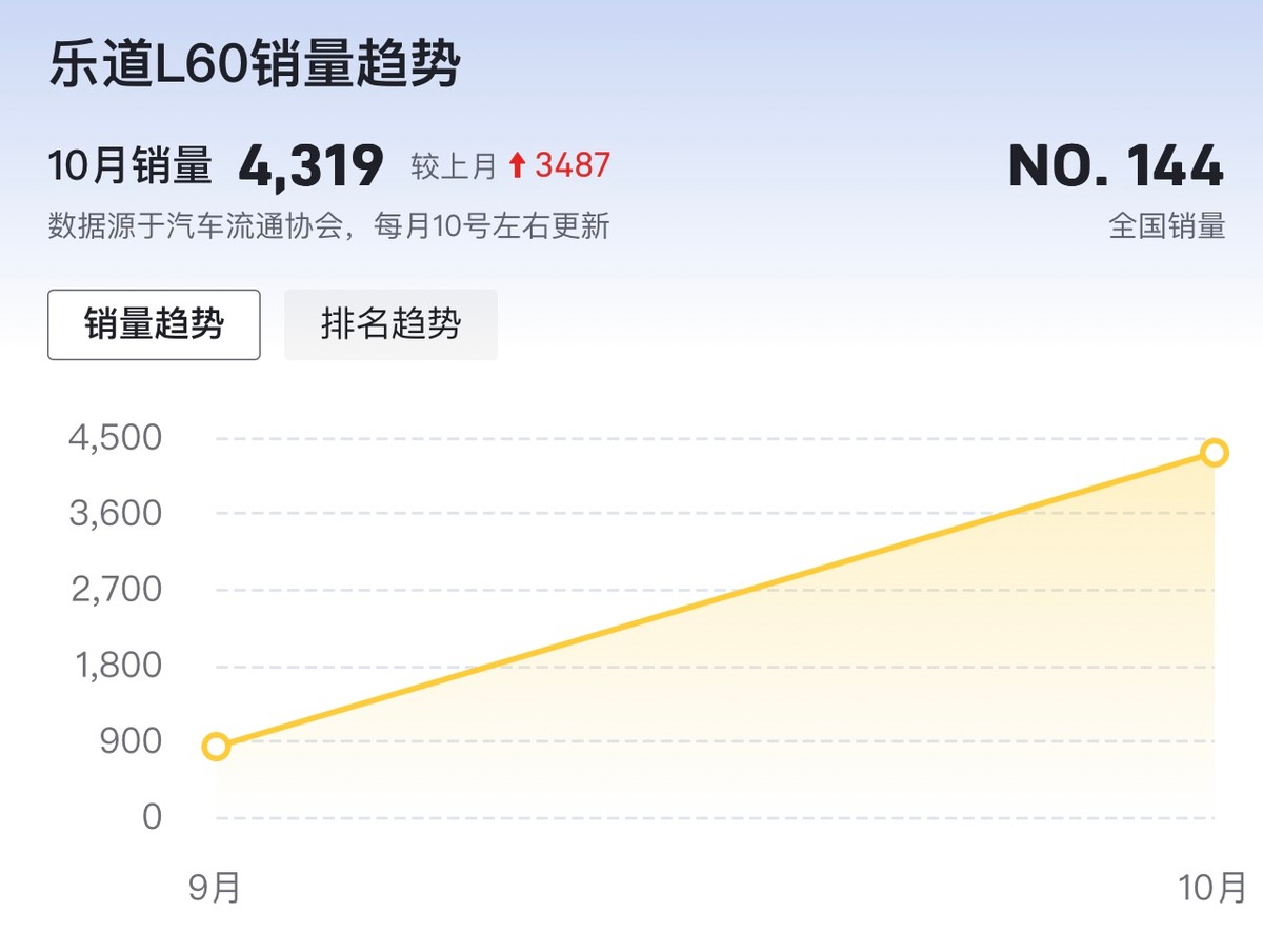 樂道L60,10月份交付4319輛,蔚來李斌一直說在樂道交付的第三個完整月將要交付過萬,這個車整體駕駛感受還可以,用料也還行,11月份目前看不到樂道L60的周交付,不知道能不能破萬呢?