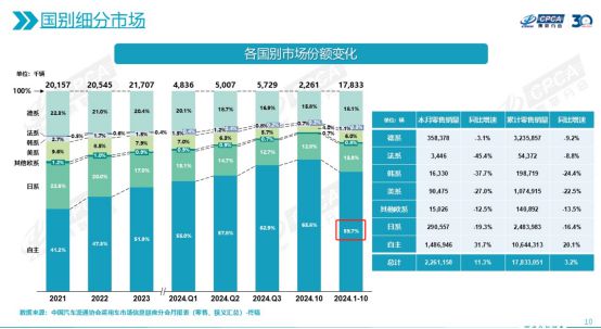 要知道,新能源汽車市場的到來,給了自主品牌彎道超車的機會。根據(jù)乘聯(lián)會數(shù)據(jù),在2024年1-10月,自主品牌的份額已經(jīng)達到了59.7%。