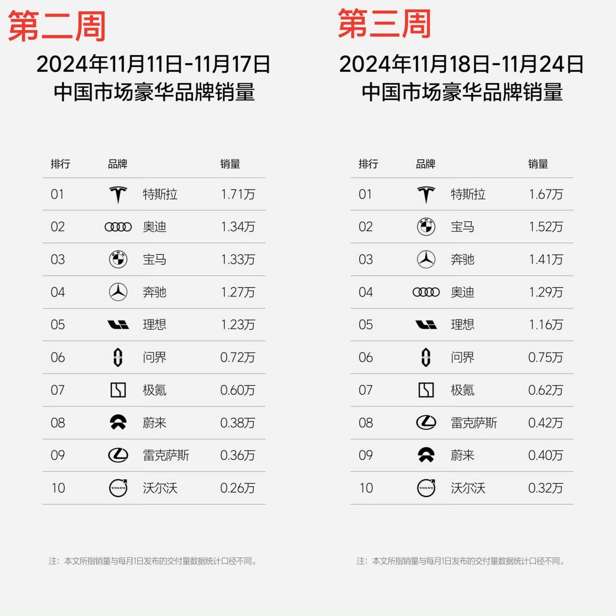 當然,除了競爭豪華車第一,在傳統豪華車陣營中,奔馳、寶馬和奧迪關于銷量冠軍的爭奪也有位激烈。本月第三周,寶馬憑借1.52萬輛的成績,超過了奔馳和奧迪,排名豪華車第二,BBA三大品牌第一。值得一提的是,近段時間以來,寶馬已經從價格戰風波中恢復元氣,在接下來的市場競爭中,為了爭奪年度第一,奔馳、寶馬以及奧迪之間在年底沖量期間的競爭,很有可能會越來越激烈。