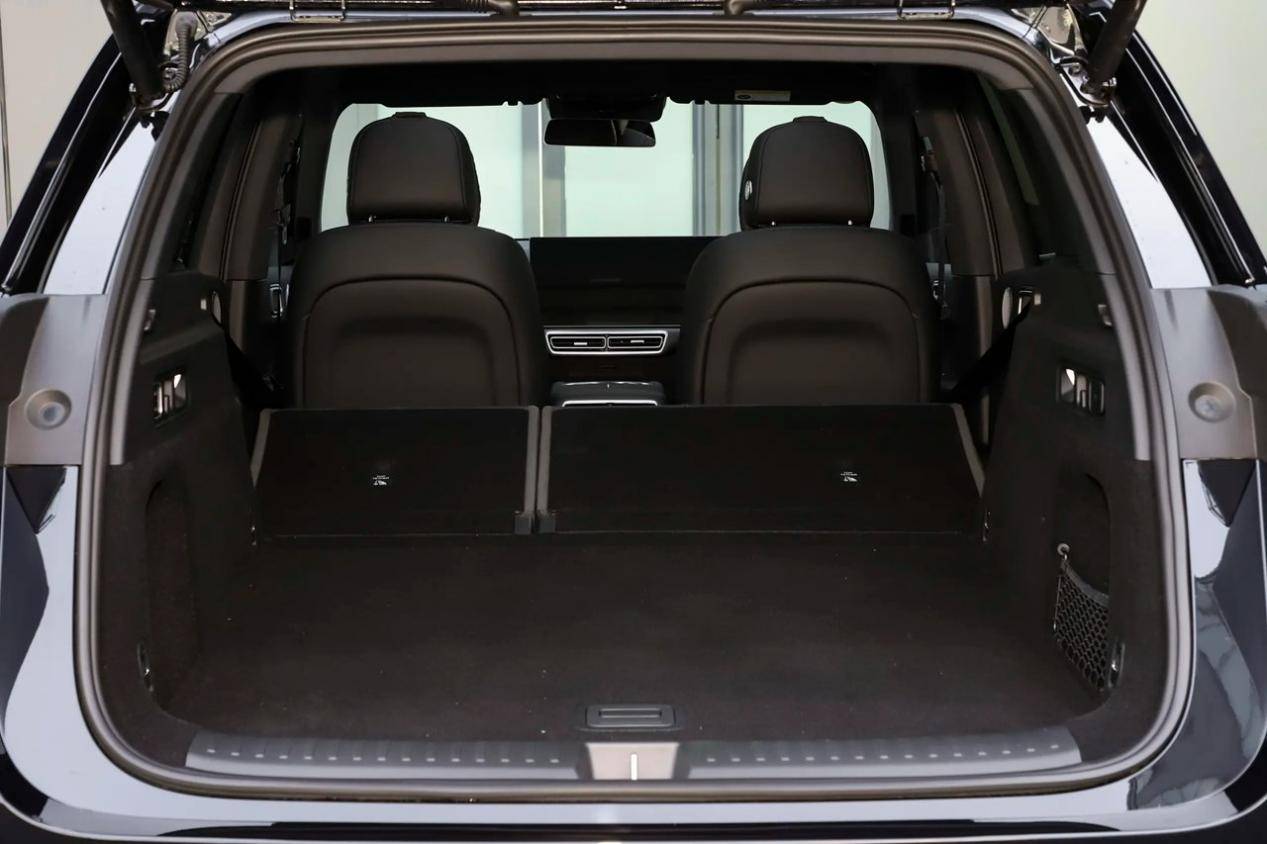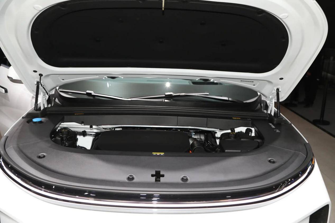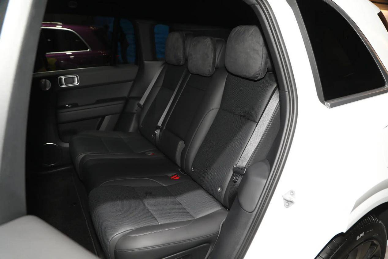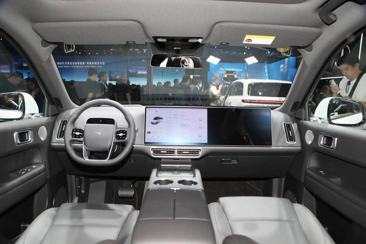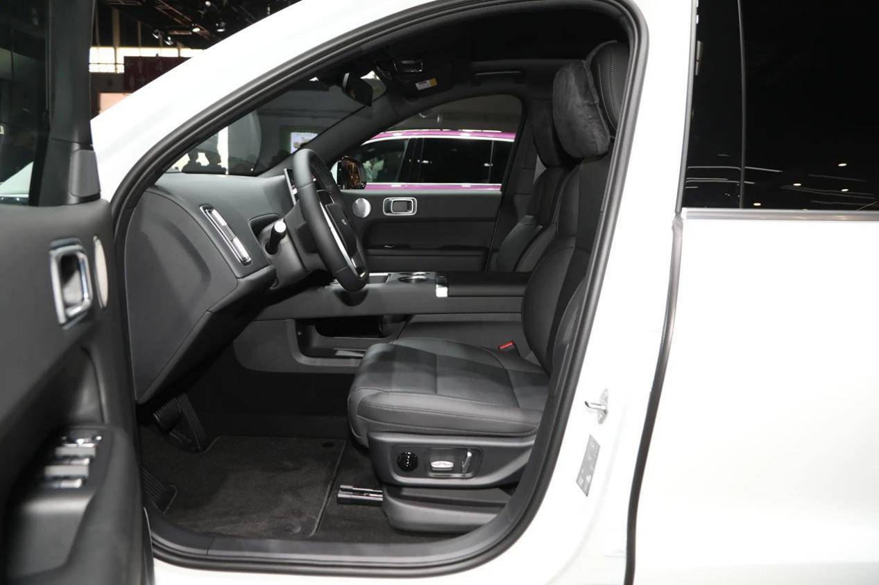 側面看去是標準的中大型SUV體型,車身四平八穩,看起來很硬朗。門把手做了隱藏,底部的輪轂也是半封閉式設計,整車在動力學方面的設計有很多。尾部上面是突出的尾翼,下面是貫穿式尾燈,車牌區域比較靠下,周圍全部是雷達,肉眼可見,大面積的留白,新車看起來也不違和。新車尺寸為4925/1960/1735mm,車身軸距為2920mm,可以看出軸距很長,內部空間充裕。