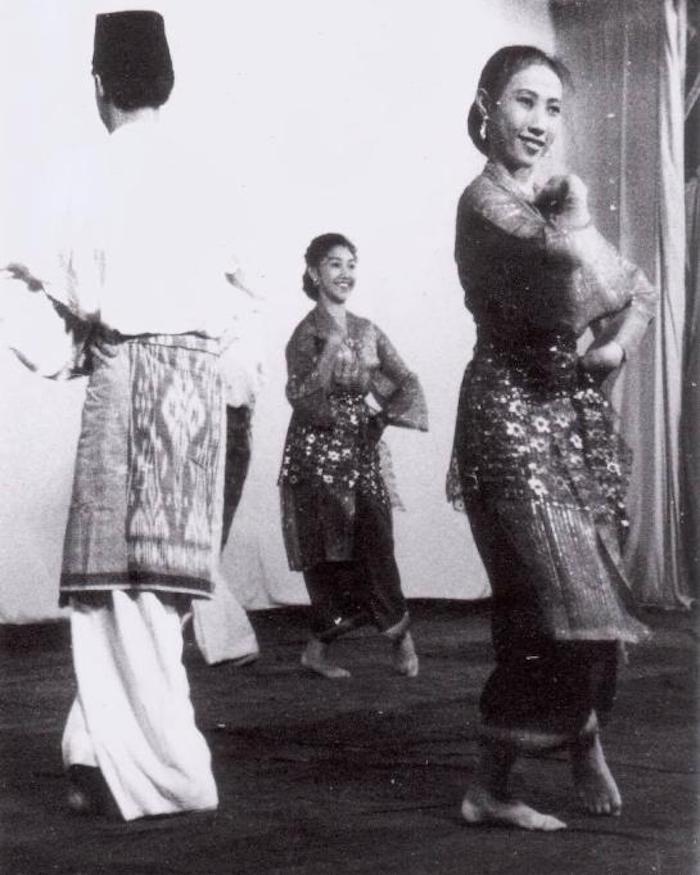 畫家的靈感極有可能來源于當(dāng)時(shí)非常流行的華校文娛晚會(huì)上的跨族群文化表演。據(jù)史料記載,當(dāng)時(shí)來自印尼的馬來舞名家廖春輝女士受邀前往華僑中學(xué)指導(dǎo)華校生學(xué)習(xí)馬來舞蹈。而廖春輝本人的印尼華人身份——既能講華語又專攻馬來、爪哇和其他原住民舞蹈——搭建了華族與馬來族的文化橋梁(圖7)。