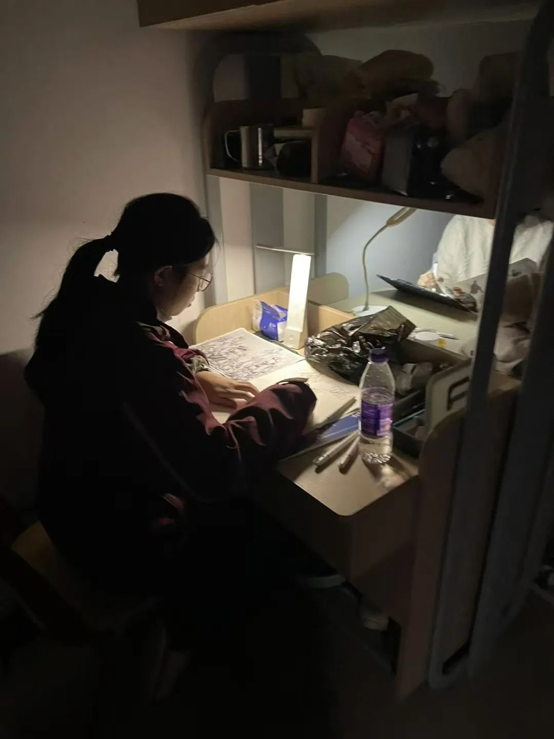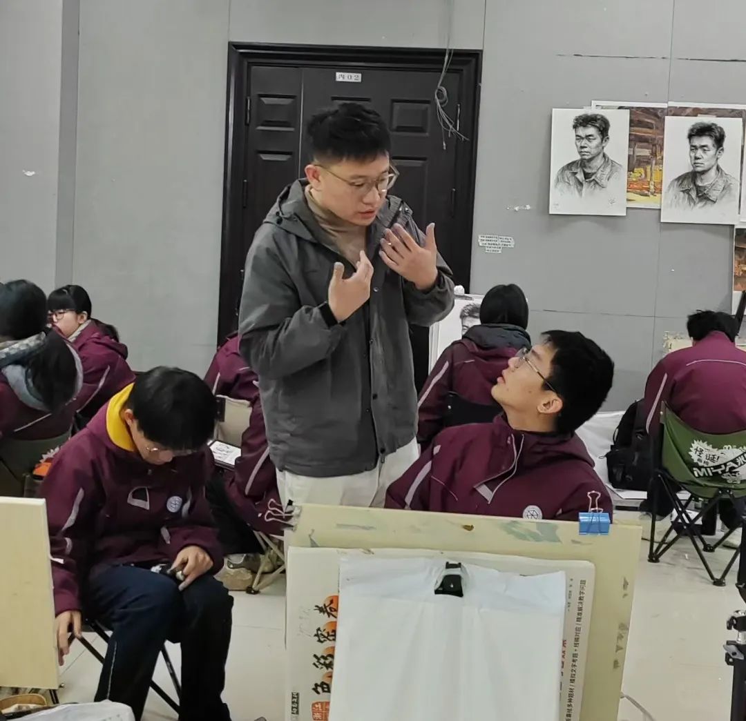 “我叮囑他,脖子、側臉等地方畫完以后容易臟、容易黑,所以在最后揉的時候要揉得透一點,處理得干凈點,亮部不要受影響。”賀佳麗說,“到了考前最后的一點時間,學生會焦慮,所以陪伴很重要。從昨天晚上到今天,我盡量給班上的每個學生都講點細節,這樣他們就會覺得,老師單獨又給我輔導過一次,心里會有底氣。”