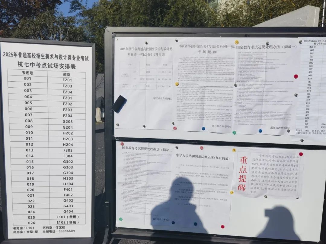 早上八點,鹿姐姐來到考點之一的杭州第七中學轉塘校區,從門口的試場安排表來看,這里設有24個考場,預計有700多位考生參加考試。