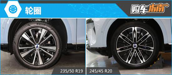 輪圈方面,兩款智駕Pro版車型配備的是雙色雙五輻式輪圈,尺寸為19英寸,輪胎規格為235/50 R19。中高配車型則為雙色七輻式造型輪圈,尺寸為20英寸,匹配的輪胎規格為245/45 R20。
