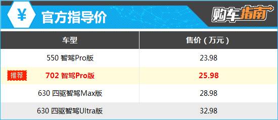 更高一級的630 四驅智駕Max版比推薦車型增加了雙電機四驅系統,配置方面標配可高低調節的空氣懸架、AR-HUD、車內香氛系統、iADC智能漂移控制系統以及iCVC智能底盤矢量控制系統。相比之下,其主要升級集中在駕駛感受方面,如果只是日常家用,那么升級的必要性并不是很強,而且兩者之間3萬元的差價并不算便宜。