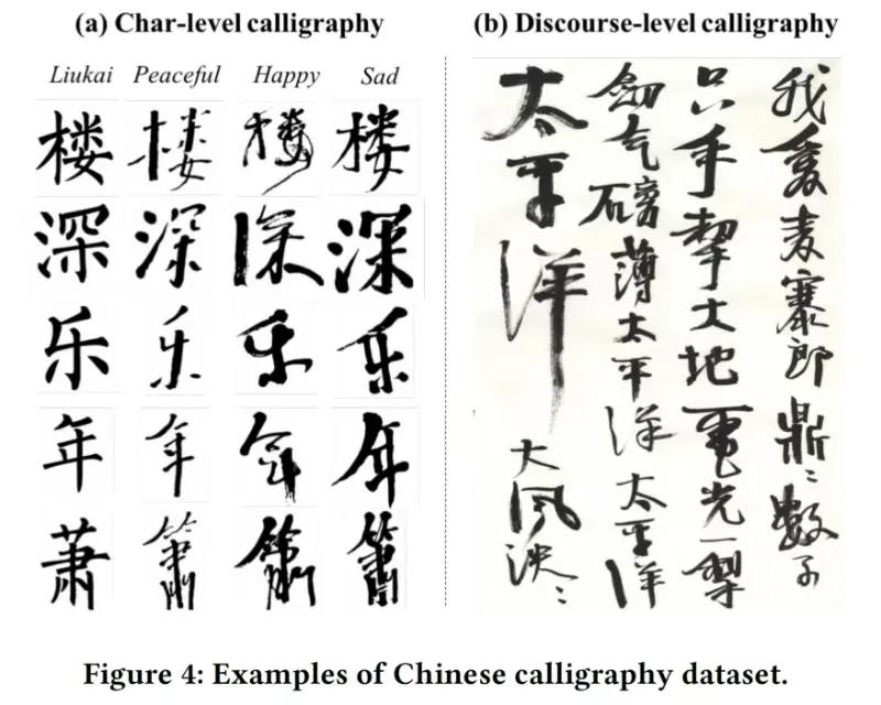 我在這個時候就想到了咱們國家傳統的書法藝術。首先書法它是一種藝術形式,其次,書法具有確定性,也就是說一個文字你能認出來,它就是正確的。所以我們投喂了很多書法作品給 AI,去訓練它。