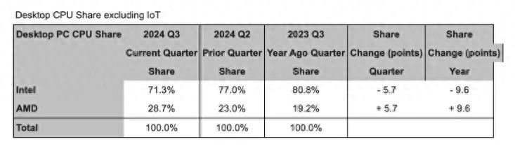也就是剛剛,Mercury Research 發布了報告,統計了 2024 Q3 的桌面端處理器市占比。