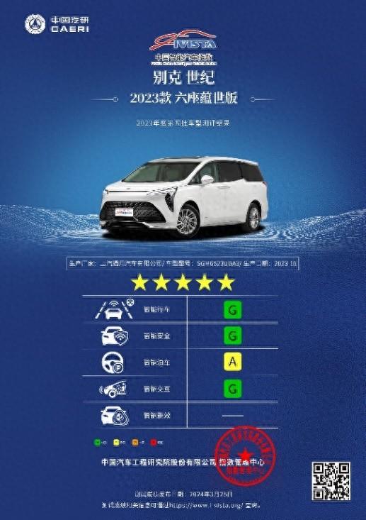 3月25日,“IVISTA中國智能汽車指數”公布2023年第五批次最新評測結果,別克世紀CENTURY在智能行車、智能安全、智能泊車和智能交互四大測試項目中獲得五星評級。