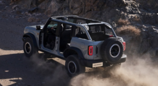 越野架構上,福特烈馬的硬件配置是全地形輪胎(35英寸外徑)、前/后差速鎖(電控機械)、氮氣減振器、智能防傾桿(可主動斷開);其中最值得一提的兩個原件就是氮氣減振器、智能防傾桿。其中氮氣減震器的優點是,它可以像傳統空氣懸掛一樣對于壓縮、回彈阻尼實時控制,保證車型動態的安穩,不至產生越野車型最可怕的那種,路面上一個相對激烈的俯仰、下陷導致方向盤“搶舵”從而導致車輛失控甚至太過具備的方向盤不可控回轉,打傷駕駛者手指的危險。