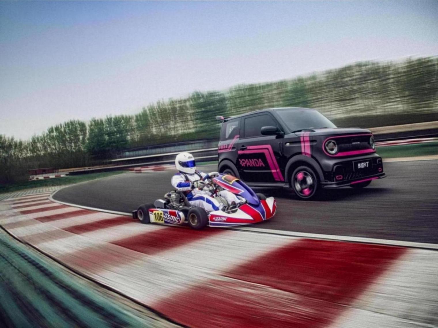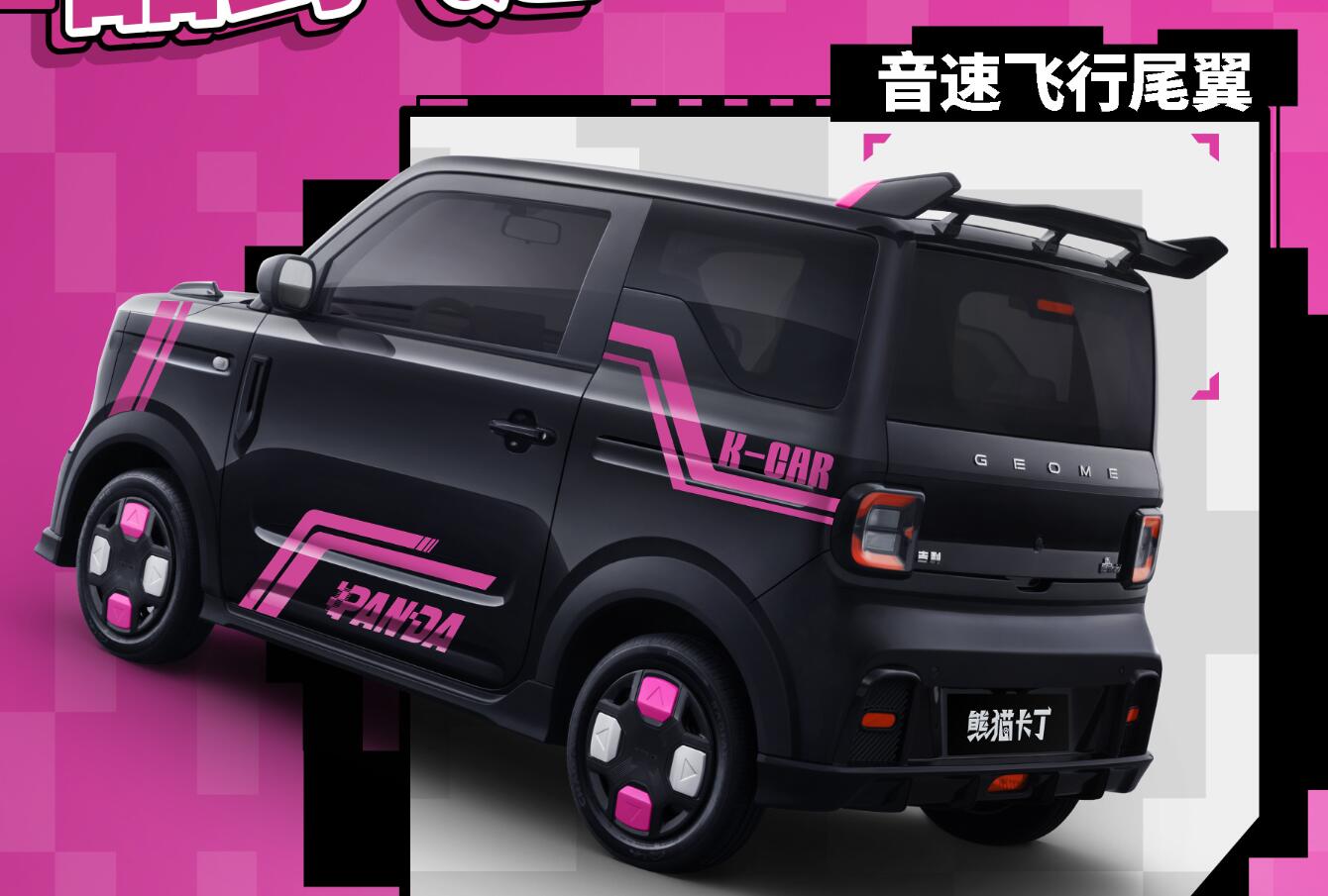 車身側面,新車采用了撞色車身懸浮式車頂設計,并在A柱下方加入了特殊的黑色裝飾補充,輪轂有著獨特的雙色布局,側裙處也有一些額外的護板與車頭的設計形成對應,同時提供競速黑冒險白狂飆灰等多種車漆,并針對不同的車企采用了不同的撞擊方式進行補充。限定時間下訂還可以贈送熊貓卡丁粉紅風暴車貼,進一步增強辨識度。