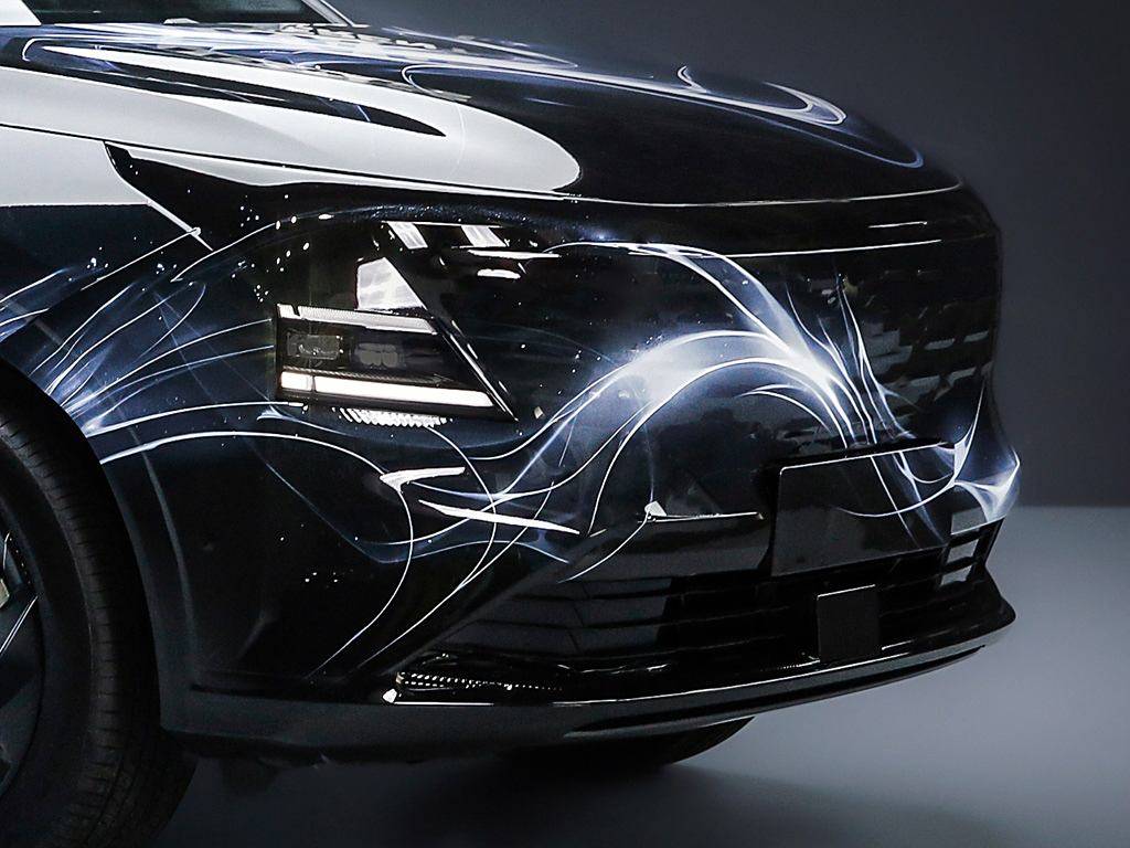 將部分細節放大之后可以看到,新車的前格柵采用了倒梯形樣式,內部或為點陣式結構。并且,這款全新SUV的前燈組或為分體式大燈,遠/近光燈上下邊緣還配有LED日間行車燈。另外,該車的輪圈融入了低風阻造型,車頂還配有行李架,車側則采用了隱藏式設計的門把手。