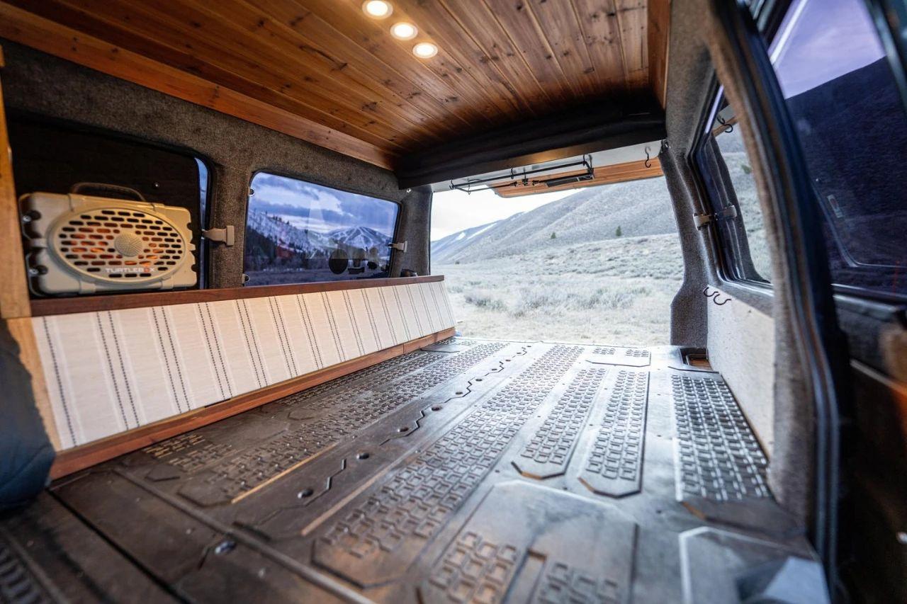 整個內飾的設計非常精良,在駕駛室上方和側面依舊使用了日系車常見的灰色織物裝飾,而地板上則使用的是實木覆蓋。此外,墻壁也是完全絕緣的。整體車內設計由Nomadic Van Life和Decked合作完成的,Decked是一家抽屜制造商,與Nomad Van Life位于同一城市,即美國愛達荷州凱徹姆。