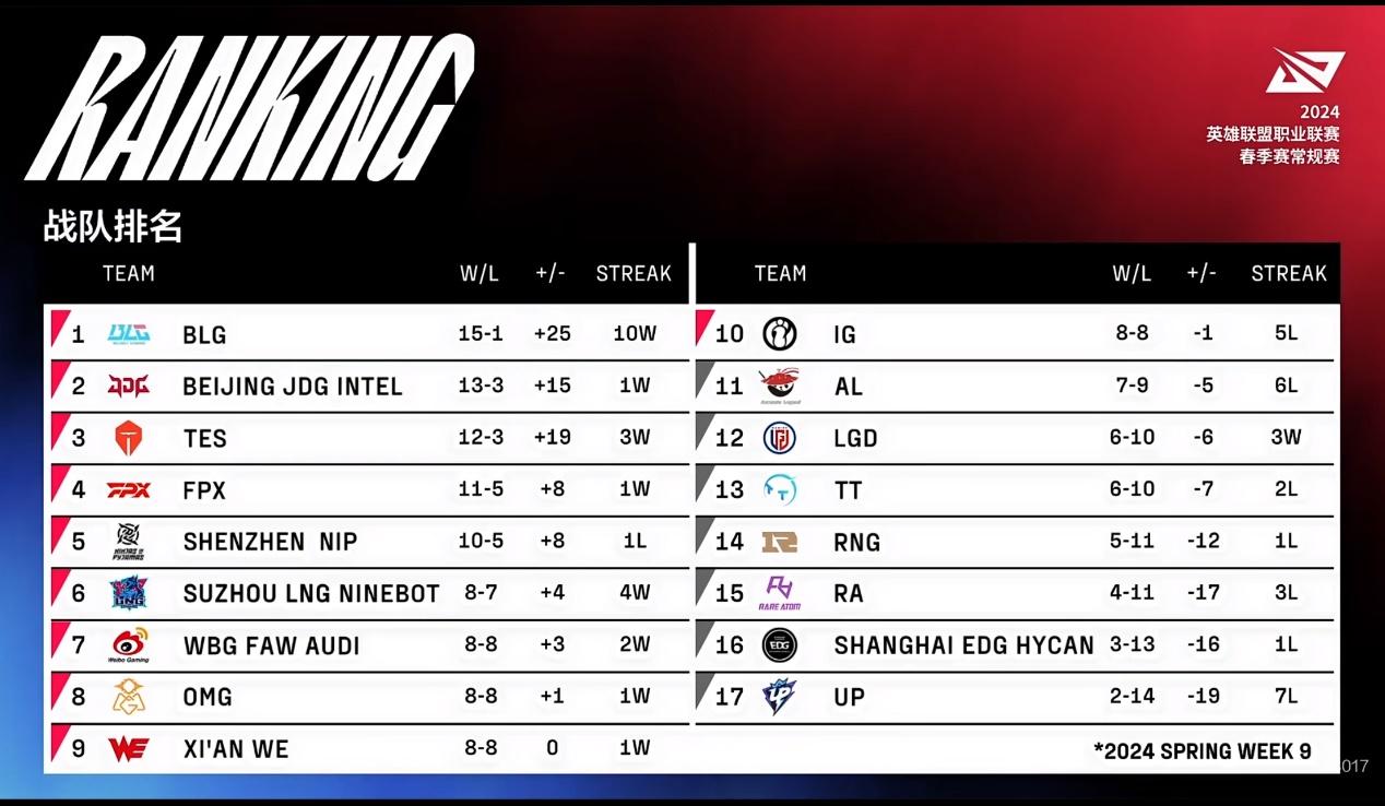 去年春季賽時期的IG是直接告別了季后賽,和今年的AL戰隊類似,但今年的IG得虧是前面多贏了一場,所以最終才以第10的身份晉級季后賽。