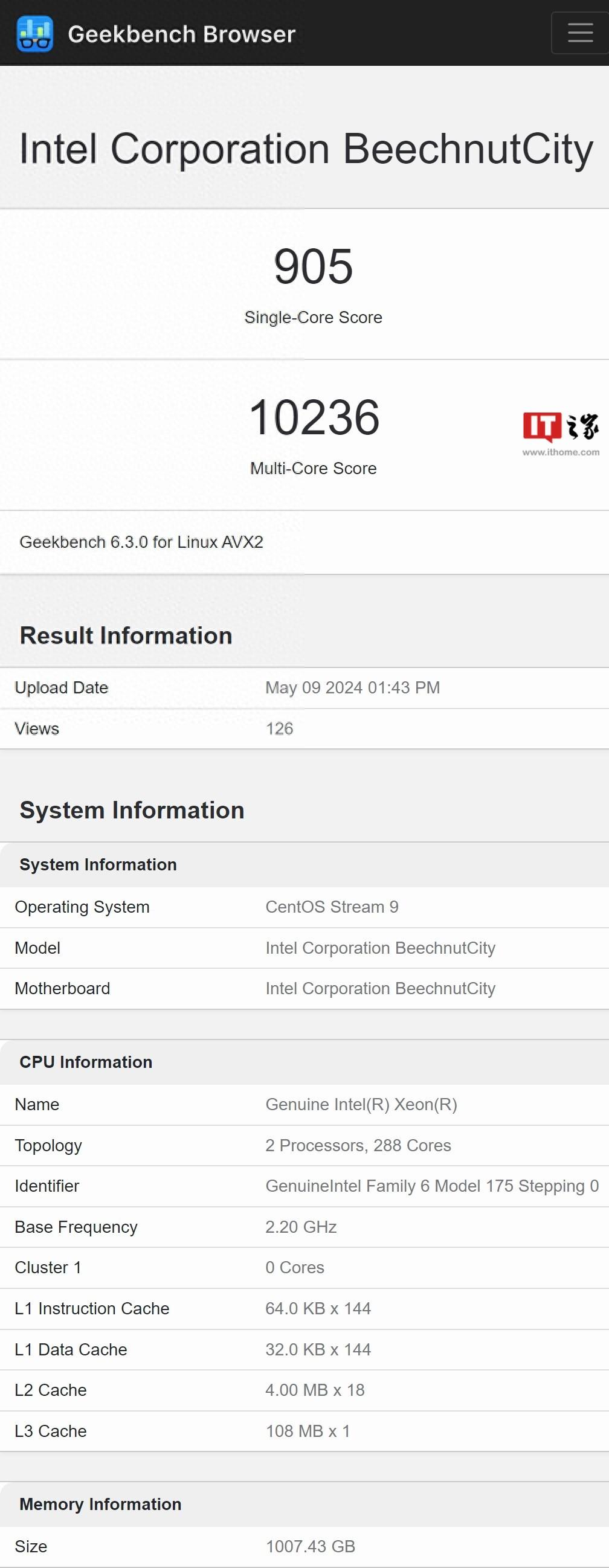 5 月 11 日消息,近日又有一份英特爾 Sierra Forest 處理器的測試成績現身 Geekbench 基準測試數據庫。