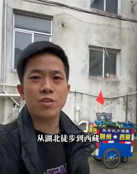 今年4月6號,90后小伙里奇在自己賬號發布了一條視頻,稱自己從湖北荊州徒步去拉薩,全部的行李都放在一個小車上,他準備推著這個車徒步到西藏。