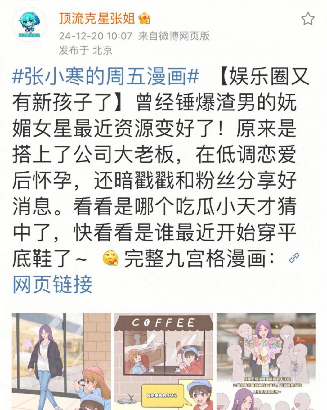 狗仔張小寒發布新爆料,透露娛樂圈又有新孩子了,這個嫵媚女星曾錘爆渣男,最近資源飛升是因為搭上了公司大老板,已經懷孕還暗戳戳跟粉絲分享這個消息。