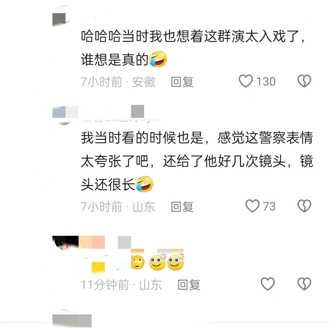 我看劇時就看到他倆,嘴巴憋得老厲害了,我還在想這倆群演表情控制這么夸張的嗎原來是真警察啊