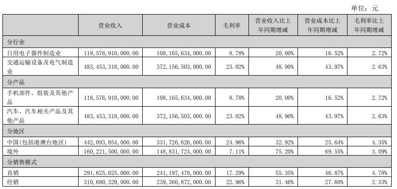 比亞迪的主要業務是手機零部件,裝配和其它產品,同時也包括汽車和汽車相關產品。在這一部分中,汽車銷售收入達到4834.53億元,占到了總營收的80.27%。預計在2023年,比亞迪將生產和銷售304.5萬臺,同比增長61.84%,實現302.4萬臺,同比增長67.79%。