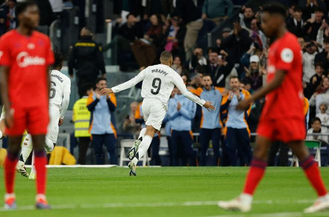 此后,皇馬再進2球,一度3-0領先。上半場,皇馬3-1。第53分鐘,姆巴佩在大禁區邊上接到隊友傳球,他順勢直傳給了禁區里的迪亞斯,后者停球打門,一氣呵成,皇馬4-1。姆巴佩送出一次助攻。最終,皇馬4-2拿下勝利,在積分榜上反超了巴薩,排在第2位。