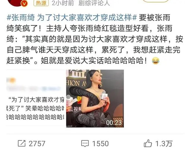 面對那黑洞般能吞噬一切偽裝的鏡頭,張雨綺毫無保留地袒露心聲:“說實話,我內心并不鐘情于這樣的性感打扮,這風格與我本真的自己相差甚遠。可我心里明鏡似的,觀眾和網友們就愛看這一套,所以為了博得大家的歡心,我才選擇了這樣的著裝。” 此語一出,恰似一顆巨石投入平靜湖面,瞬間激起千層浪,現場一片嘩然,網絡上更是像炸開了鍋一般,網友們的討論熱度直線飆升。一部分人對她的這份坦誠與真性情猶如挖到寶藏般興奮不已,贊賞有加;而另一部分人則像是被突然嚇到的小鹿,對她如此直率的言行感到無比驚訝。